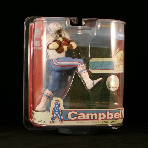 WHITE JERSEY VARIANT EARL CAMPBELL MCFARLANE'S SPORTS PICKS: NFL LEGENDS SERIES 3. Figure stands 6 1/2 inches at top of helmet. Includes 6-inch wide by 3 1/2-inch deep base. Originally released in August 2007. From McFarlane Toys Earl Campbell VARIANT WHITE JERSEY Figure stands 6 1/2 inches at top of helmet. Includes 6-inch wide by 3 1/2-inch deep base Originally released in 2007 - Retired / Out o